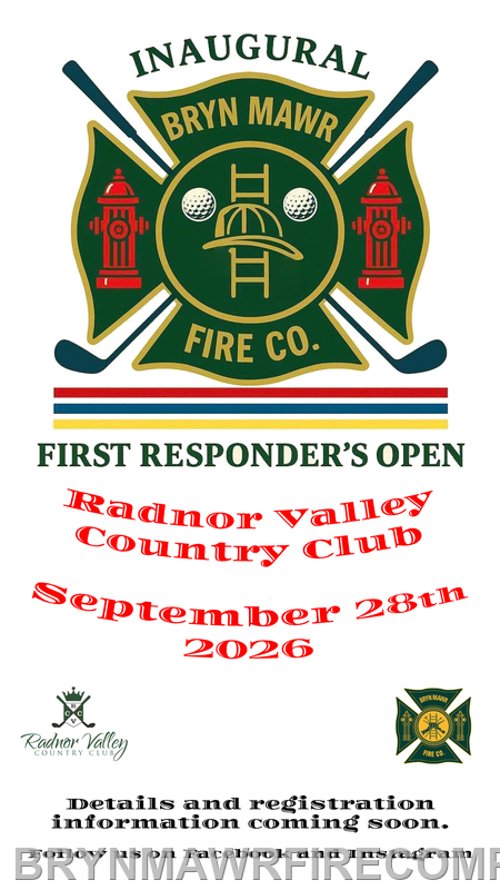 The Bryn Mawr Fire Company is excited to announce our Inaugural First Responders Open golf outing. The outing will be held at Radnor Valley Country Club on September 28th, 2026. Registration details coming soon!
